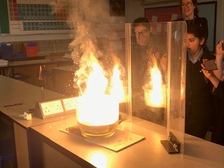 On Wednesday lunchtime, Professor Wayne Hayes from Reading university came in to talk to our students about polymers and in particular self-healing ones which hopefully could be used in the medical and infrastructure fields of science, for example, if there is scratch on your car – it will self-repair! Sounds good to me! The talk was very well received, as was the department’s “Pretty, Pretty, Bang, Bang show” on Friday lunchtime. This was really enthralling, and involved gases, dry ice, colour changing magic and fire……..all from behind a safety screen of course!