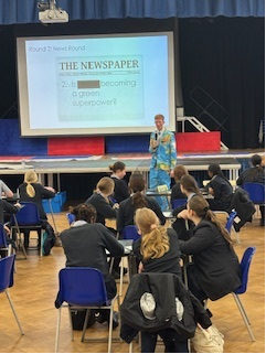 Friday afternoon saw another much-loved Holt annual event, as Mr Mosely once again hosted the very competitive House geography quiz. Yes, his famous map-of-the-world suit was dusted down for the occasion, and he looked the part as he led six rounds of quiz questions, with each round inspired by a different member of the geography department. There were rounds like service stations or cheese, a country Emoji Quiz and fill in the blanks of key terms. Each House had two teams made up of one Year 8, 9 & 10. There was also a break for the quizzers to have a donut halfway through. The quiz was marked by some of the 6th form geographers and they did a brilliant job. Well done to everyone who took part! And B were the winners!