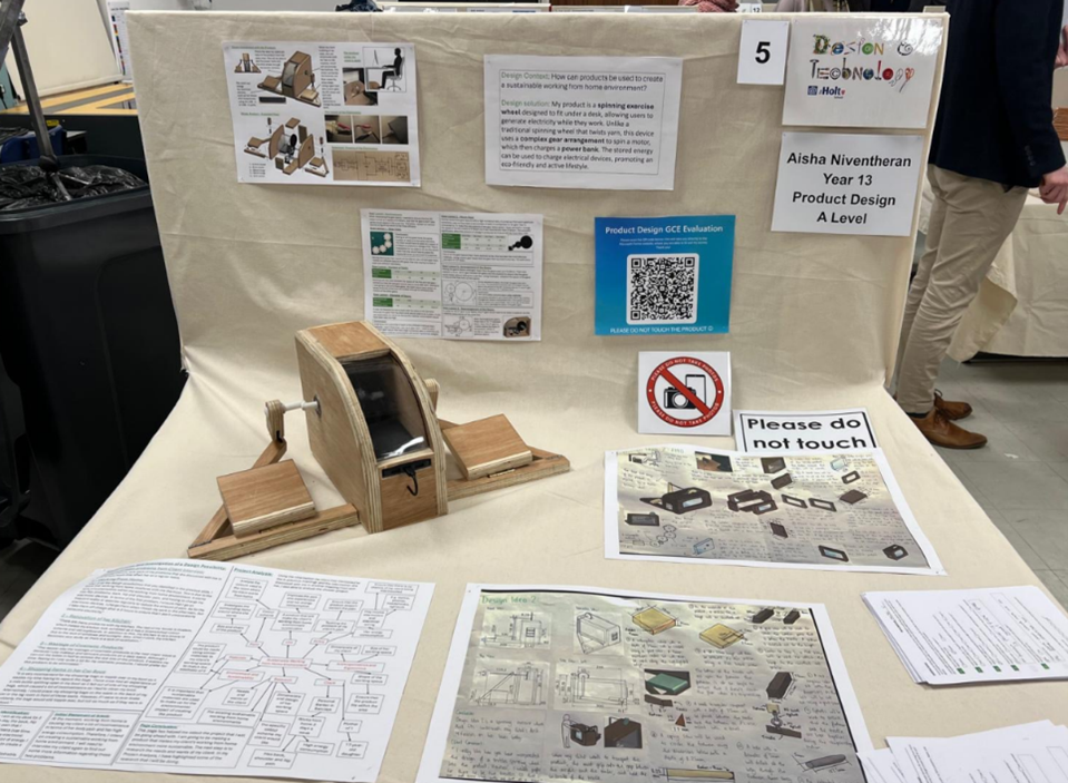I am fortunate to line manage our Technology Department. Mr Turner and the team have been supporting Y11 and Y13 students over many months as they have designed and made finished products for their non-examination assessment (NEAs). Last Thursday saw an exhibition of these pieces from the disciplines of product design, graphics and textiles. So much work from staff and students had gone into the evening, and the rooms were thronged with parents and other visitors.