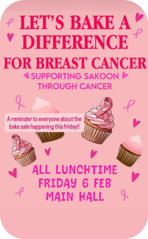 Our new Student Leadership Team has hit the ground running and is preparing for today’s bake sale in support of the breast cancer charity Sakoon. This initiative links with the excellent work being led by Mrs Hornblow and the PSHE team to raise awareness and educate students about breast cancer. I’m sure your daughters will enjoy the delicious treats while supporting such an important cause.